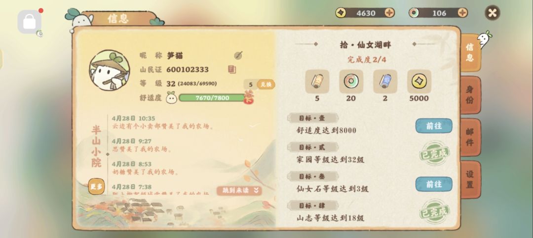 豹子头优先建筑和卷轴(头像太爱了,受不了第一天就换了) 目前是最高120最低80,可以看看有没有谁是120的,要个id去他家 记住每天除虫除满 也有肥料,这个容易忘记 理论上,豹子头最高能得3w出头的货币,一个背景板3w,emmm,是可以直接卖,挂在商店,但是如果加入活动商店的话 豹子头也有了放弃其他的东西,白嫖背景板的机会,我是这么想的,然后不知道明年会不会复刻,听说不存在绝版。