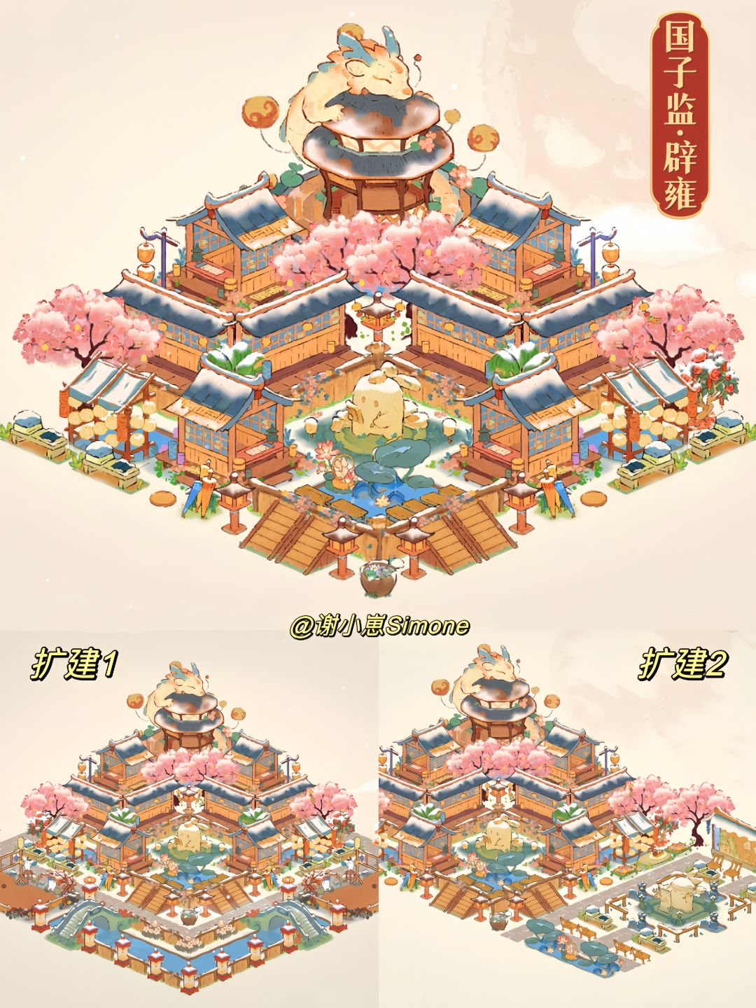 比心[表情_比心]造景编号:wz444756 比心[表情_比心]地标系列又来啦,看到画家李乾朗的手绘中国古建筑图册,决定在萝萝山修一个「国子监·辟雍大殿」,「有龙则灵」刚好有「鱼跃龙门」之意,含2种扩建,抄录时可以直接把主体大楼搬回家,第一排的小建筑需要手动补一补~~~ 比心[表情_比心]关于「辟雍」,是西周时期天子为教育贵族子弟设立的大学,取四周有水,形如璧环为名。辟雍是太庙国子监的中心建筑,是