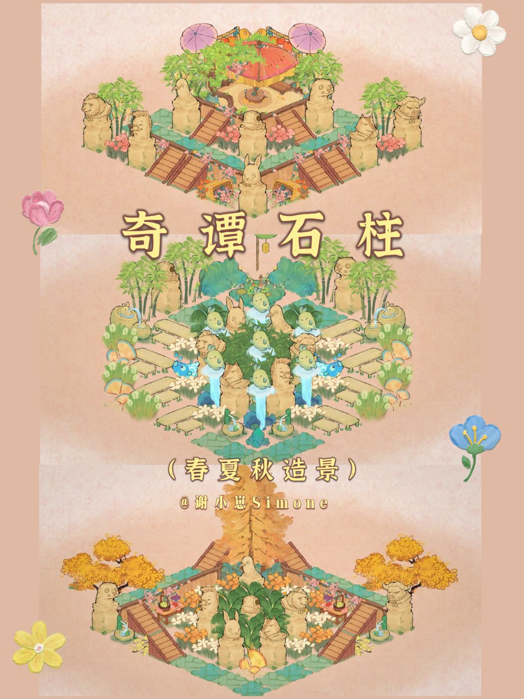「奇谭石柱」春夏秋3种造景(可抄录)