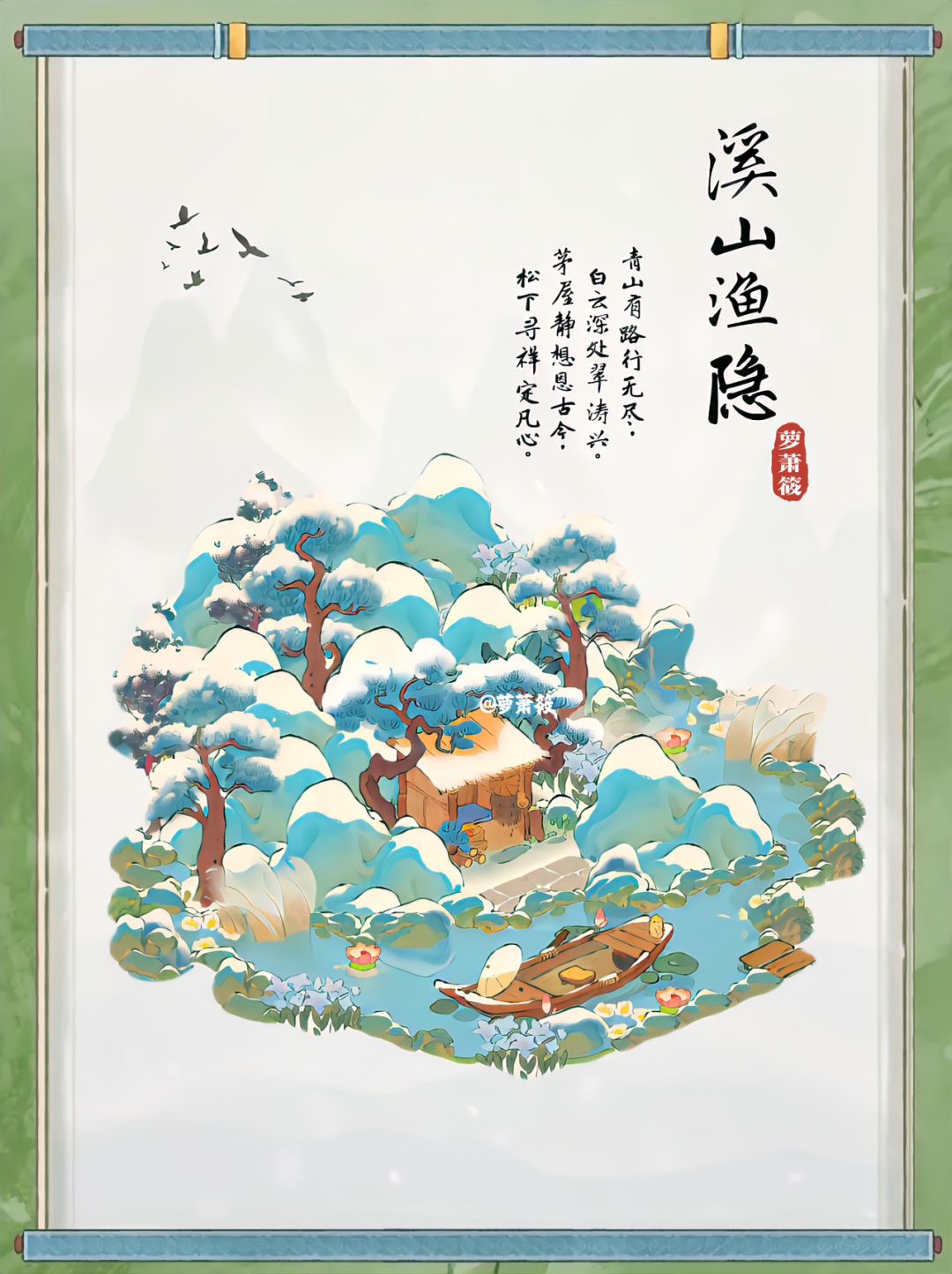 桃源丨「茅禅虬松」节气建筑布局(可抄录) 🌸「溪山渔隐」灵感来源于唐寅的 《溪山渔隐图》 🌸画面中清泉石耸立,松林茂密,茅屋临山而居,江边浮舟而渔。是多少人向往的生活。 🌸造景编号:wz396937 🌸抄作业随意哦,若发布请在正文@ 我,禁未授权商用和搬运,谢谢喜欢💕#桃源深处有人家装修#桃源深处有人家#桃源深处有人家布局展示#桃源深处有人家生活记录#桃源造景展