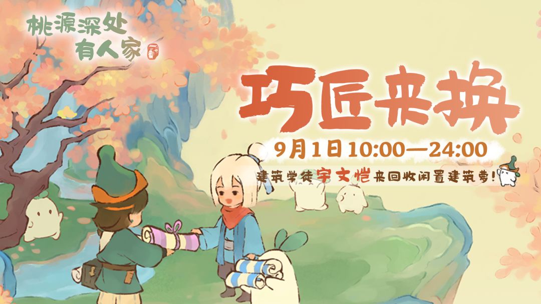萝萝山的山民你们好呀!新一期的「巧匠来换」建筑回收活动将在9月1日限时开启萝! 建筑学徒「宇文恺」将会在9月1日10:00-24:00期间于萝萝山停留,进行建筑回收。 为了大家在参与「巧匠来换」活动时有更好的体验,萝卜整理了一份「巧匠来换」活动相关说明,方便大家查阅。 本期将有新建筑「喷喷泉」「红鲤翔」登场,感兴趣的山民千万不要错过萝!#桃源深处有人家