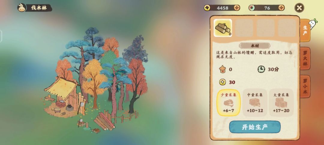 桃源上线已经有几天啦~相信很多小可爱已经成功升到10级以上了!这不新的玩法就来了吗~ 本人——萝萝山肝帝·钮祜禄·但是肝疼带着攻略走来啦!今天要科普的是萝萝山伐木林和鱼池的玩法,话不多说让我们往下看~ 一、 伐木林介绍、玩法与收益建议1.伐木林玩法是什么伐木林玩法在12级时可以开启,即派遣小萝卜们前往伐木林砍伐获得木材,与一般的生产相似,但不同的是伐木林只需要给出一定的铜钱与等待相应的时间就可以了