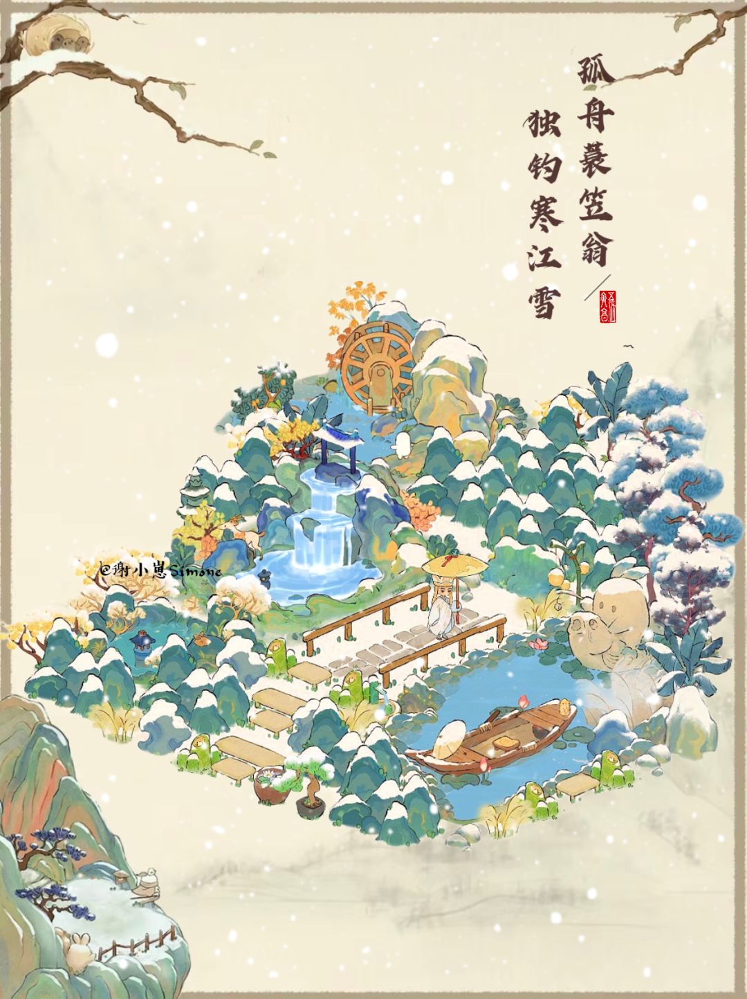 千山鸟飞绝,万径人踪灭。 孤舟蓑笠翁,独钓寒江雪。 ———《江雪》唐/柳宗元 造景编号:wz319244 作业可抄回家,如果发布公共平台请备注作者信息,禁未授权商用和搬运。游戏唯一id:谢小崽|桃源V区。#烟火桃源乡内容征集#游戏安利#桃源深处有人家#桃源深处有人家装修#国产游戏