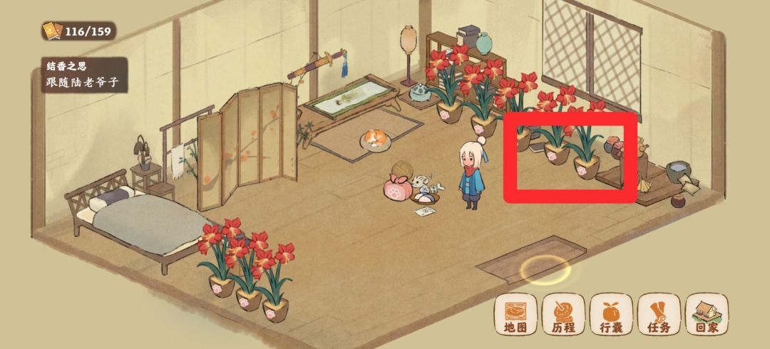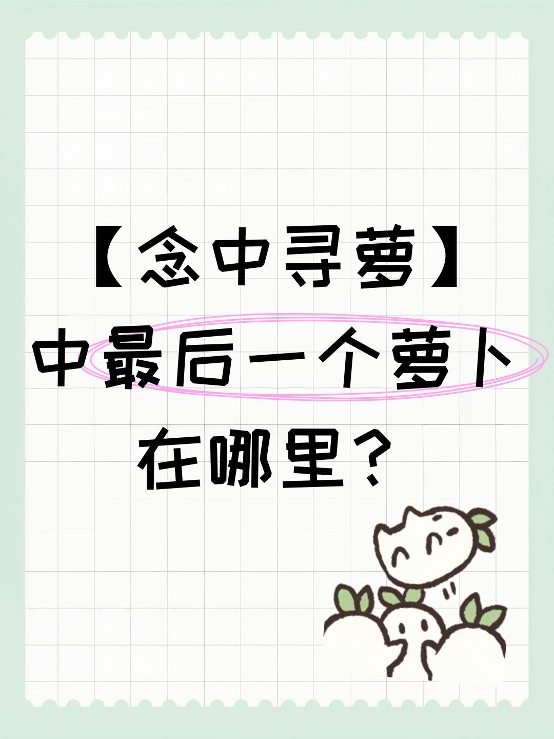 有四个萝卜在主线任务完成后才出现: 1. 花明村茅草屋,红花盆景后面(那个萝卜我没有截上,但是大概给大家画个位置) 茅草屋之前一直是破破烂烂的,只有在金钗和剑穗都完成了之后,又解锁了一个小光团(任务纳猫礼),但是在纳猫礼任务的中途是没有办法找到的,只有这个任务完成了以后再回到这个屋里看,才有这个萝卜。 2. 花明村茅草屋下,一个翻菜盘的萝卜(也是给大家画个位置) 3. 花明村河里,溺水萝卜 4. 陆