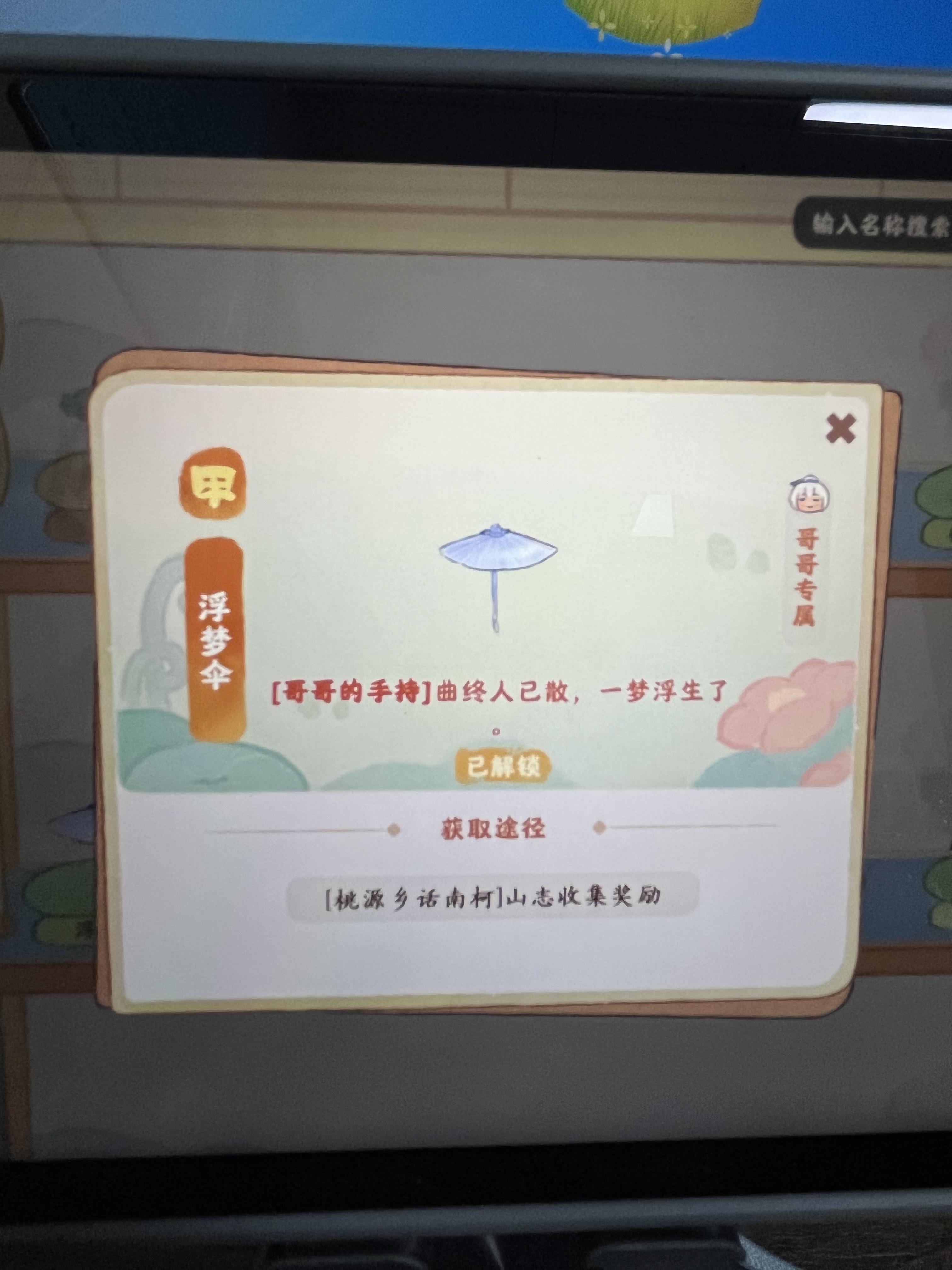 这把伞在山志收藏奖励里是乙级,但是在装扮和百闻馆里是甲级的……是不是需要优化一下?我提了不治2次了,一直没修复