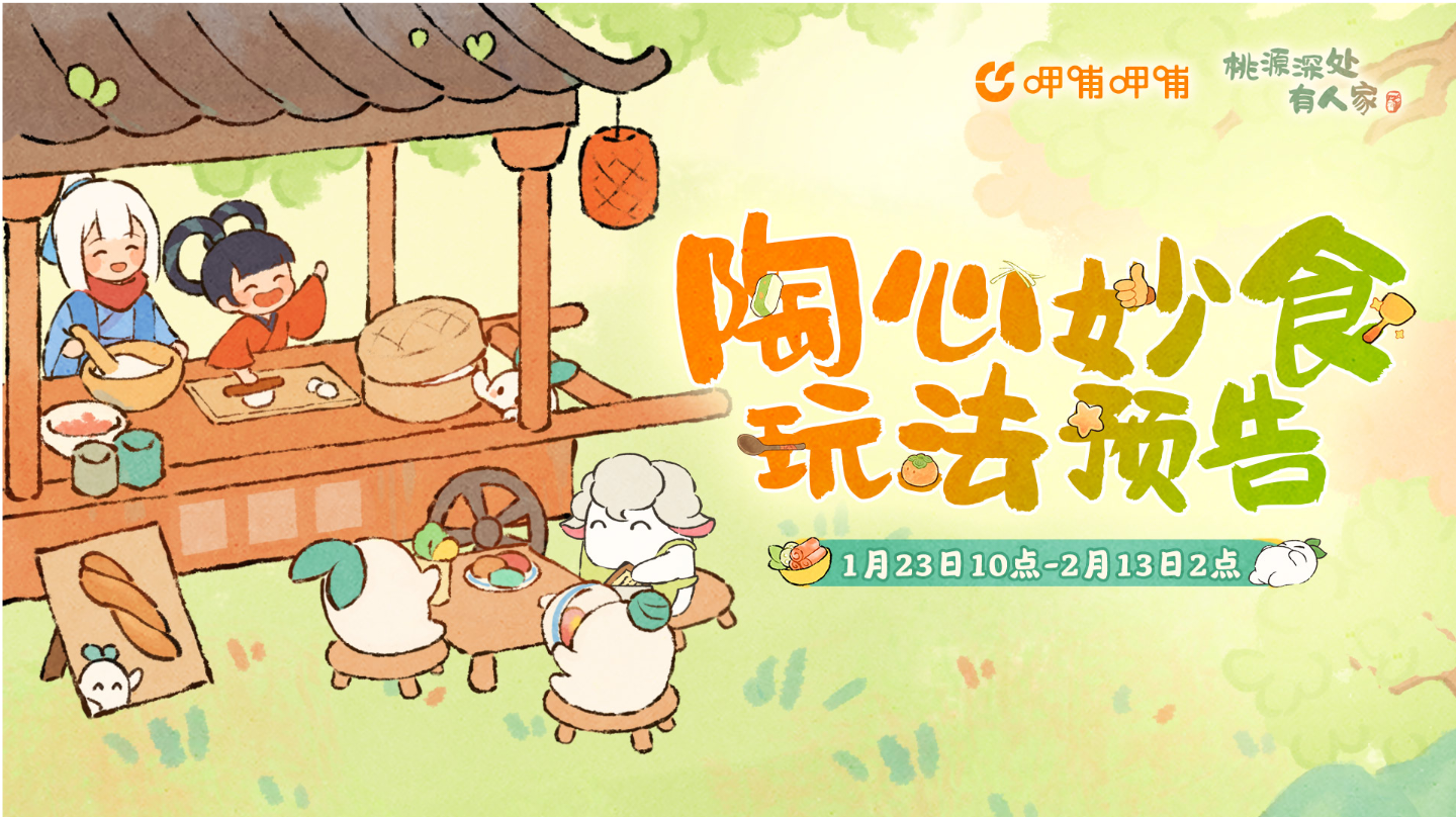 听说好多山民很怀念做餐食的日子?这就来了,「陶心妙食」玩法将于1月23日回归!本次活动与@呷哺呷哺 联动开启!如果在寒冷的冬日来一锅热气腾腾的火锅,那真是太惬意了~山民们快快加入陶陶的美食摊,一起涮火锅,学习如何制作馄饨、烤馕、炸酱面、螺蛳粉等人气佳肴吧!参与活动,有机会获得联动建筑、装扮、头像等奖励!还有「桃夭焕春」系列外观等返场,开启限时兑换哦~【福利活动】桃源×呷哺呷哺联动套餐也将限