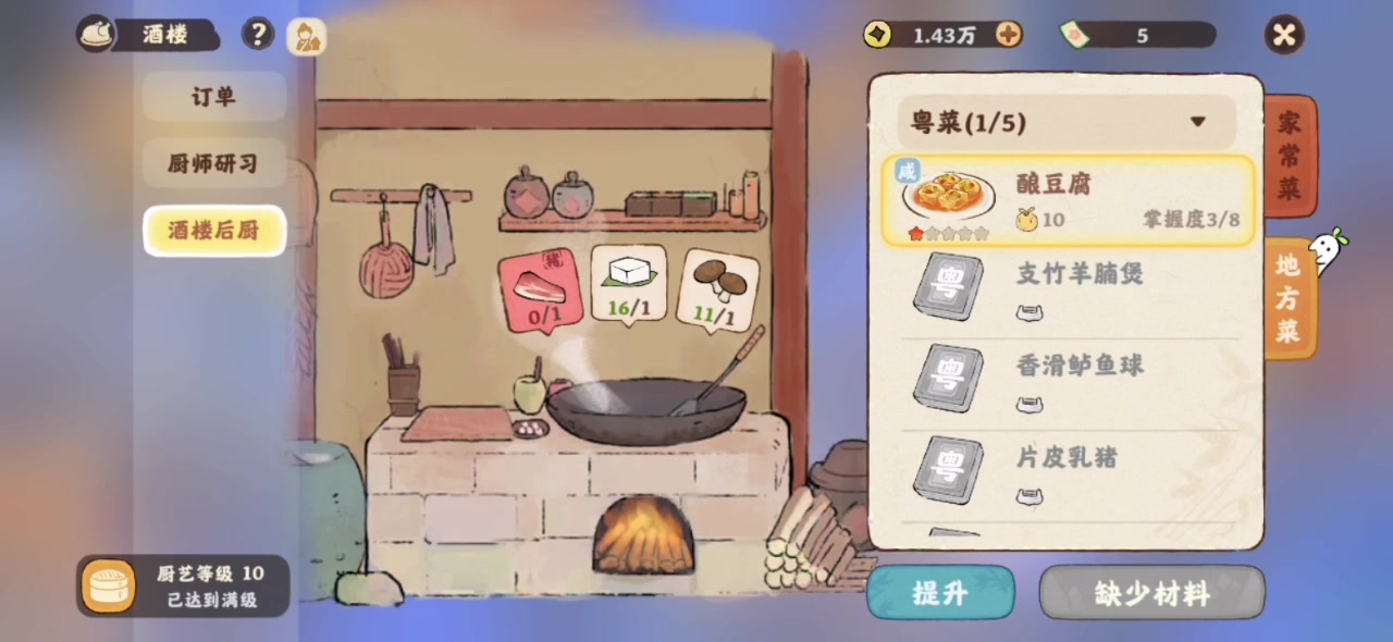 桃源乡的酒楼,猪肉做菜需要8份。期间位置缩小,点了4次。2次才成功的。申请杂货铺的猪肉一天可能多买几块。