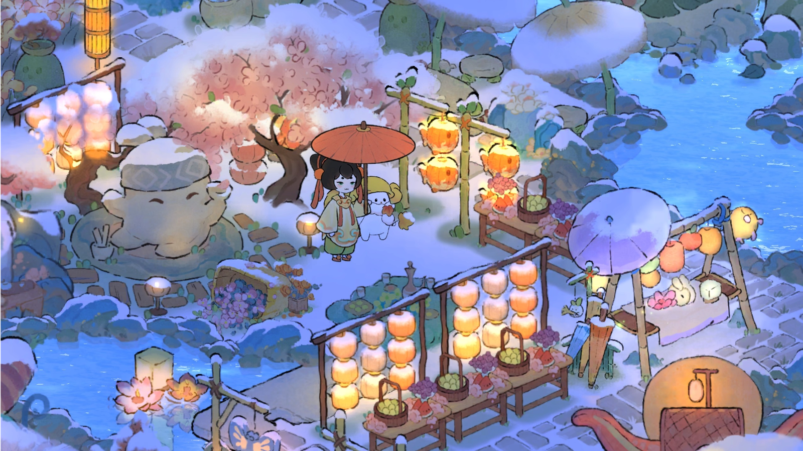 这是一款能让人放松身心,缓解压力的悠然治愈的国风山水田园经营手游;这里无需研究过多攻略,沉浸其中,种植、建造,配合游戏内BGM,就可以让你轻松体验内在快乐。#来初雪桃源乡赶集啦