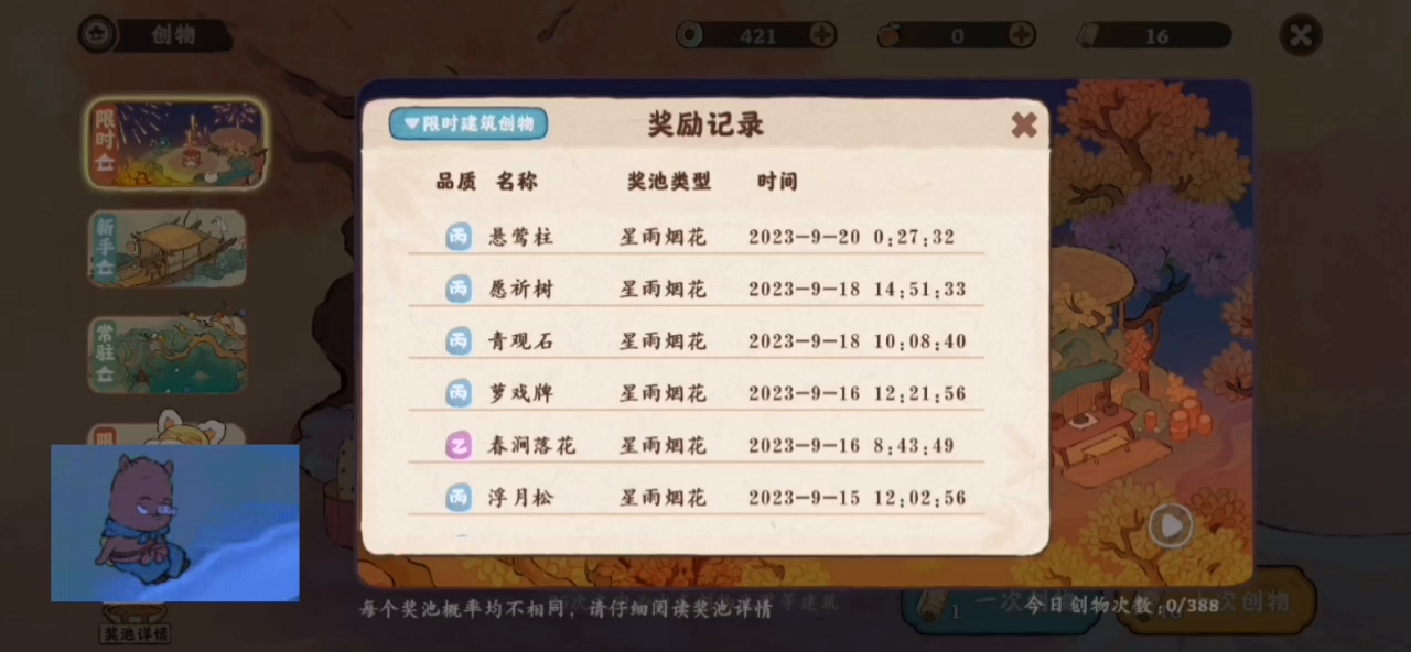 抽甲建筑抽不到。必须抽满60次,少一次不出甲(60个抽券5个乙1个甲) 烟花台抽不到,第一天抽到乙。后面都是丙。新手池抽到现在还是丙。常驻也是丙(天天花40叮当购买抽券抽的都是丙。)程序员👨🏻💻我讨厌吃丙[表情_惊恐][表情_惊恐][表情_惊恐][表情_惊恐][表情_惊恐][表情_惊恐][表情_惊恐]