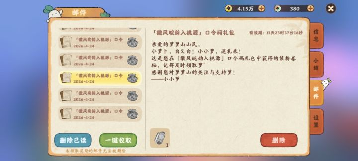 1:桃源新祈愿灯兑换码两个如下:(已上线)祝大家都成为闪闪发光的自己桃源三周年乐2:桃源节气建筑和家具上线预告!上线时间(4月5日10:00)瘦石凝香、杜鵑琅圩翠屏、云杏蕊香。#桃源深处有人家 #今天游戏圈发生了啥 #桃源三周年花朝春颂 #桃源PC端 #桃源春日宴