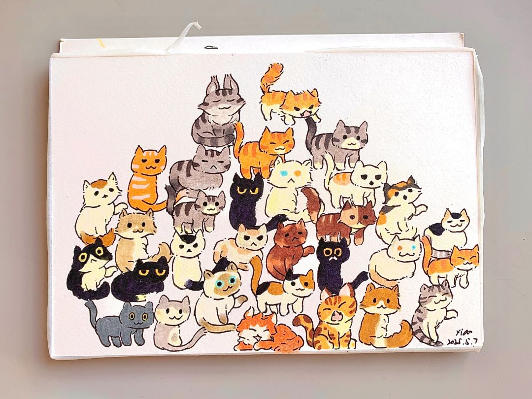 画桃源~ - 昨天画的线稿,今天上色完全忘了哪只是哪只[表情_捂脸哭] 上色上错了一只猫猫 看看哪个眼尖的山民能发现[表情_斜眼笑] 你们都收集了几只吖 #桃源深处有人家 #玩桃源的都是自家人 #桃源二创 #游戏安利 #游戏推荐