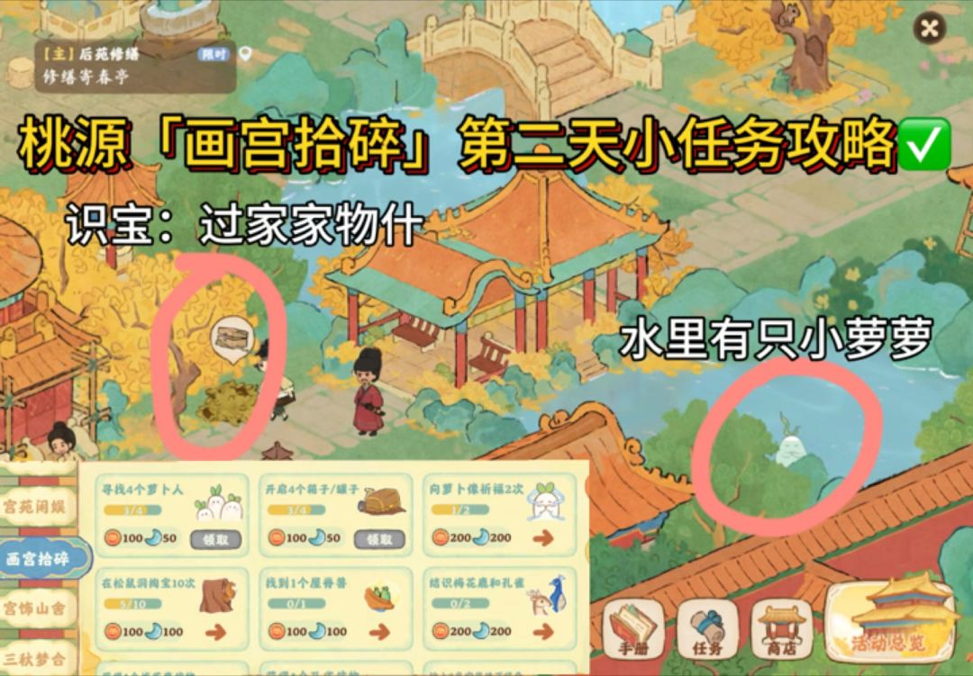 #桃源深处有人家 #桃源深处有人家攻略 #游戏日常 #桃源宫烟故梦 桃源限时剧情小任务第二天内容攻略✅ 开心[表情_开心]比心[表情_比心]比心[表情_比心]大笑[表情_大笑] 求互关点赞流口水[表情_流口水]
