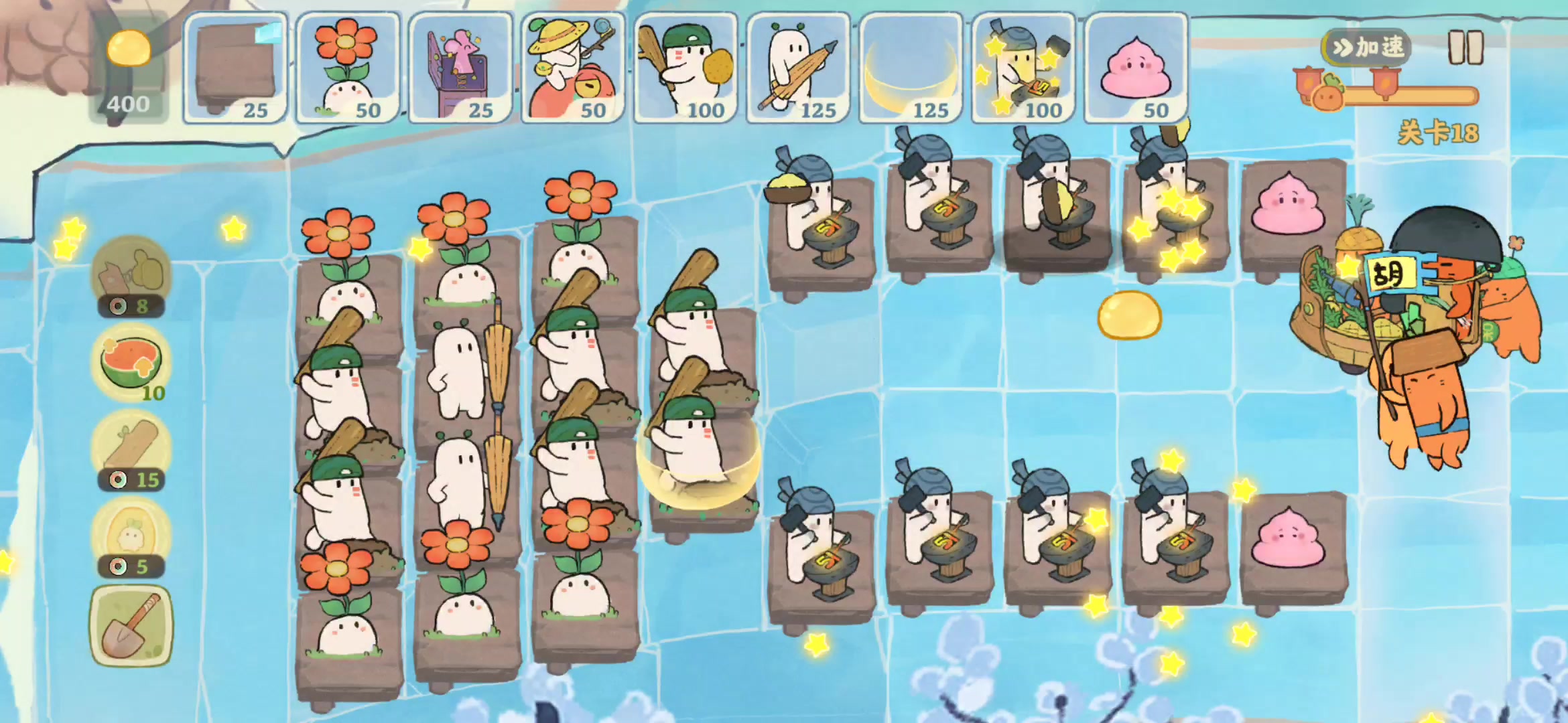 玩到现在还剩最后几关了,感觉便便萝加打铁萝的组合真的是最佳性价比模式😆胡萝既害怕便便到处绕路又绕不走😆只能被打铁萝(对应植物大战僵尸里的杨桃)四门八方的攻击大倒…就算突然被拔掉几个萝也不怕😆这个模式性价比真高#桃源深处有人家