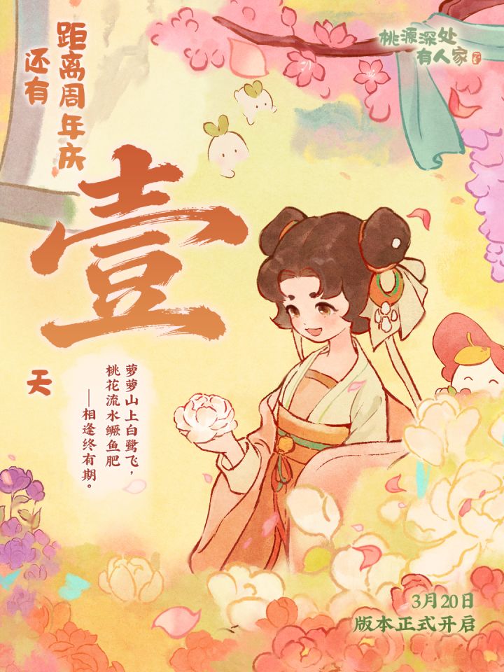萝萝山上白鹭飞,桃花流水鳜鱼肥——相逢终有期。「花朝春颂 淑景同欢」版本已正式开启,签到累积得百抽福利;明天,桃源周年庆启幕,满园春色,只待你来!#桃源深处有人家