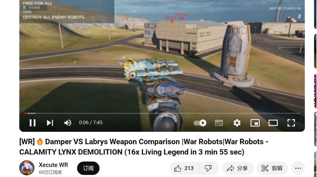 Weapon Comparison |War Robots|War Robots - CALAMITY LYNX DEMOLITION (16x Living Legend in 3 min 55 sec) Damper VS Labrys 武器比较 |战争机器人|战争机器人 - CALAMITY LYNX DEMOLITION(3 分 55 秒内 16x 活传奇)