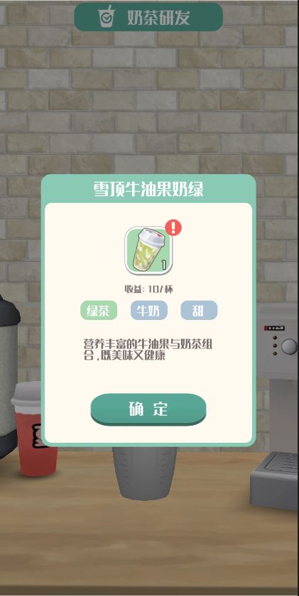 只要能制作出相同的奶茶,就能给奶茶升级,来提升奶茶出售的价格哦~