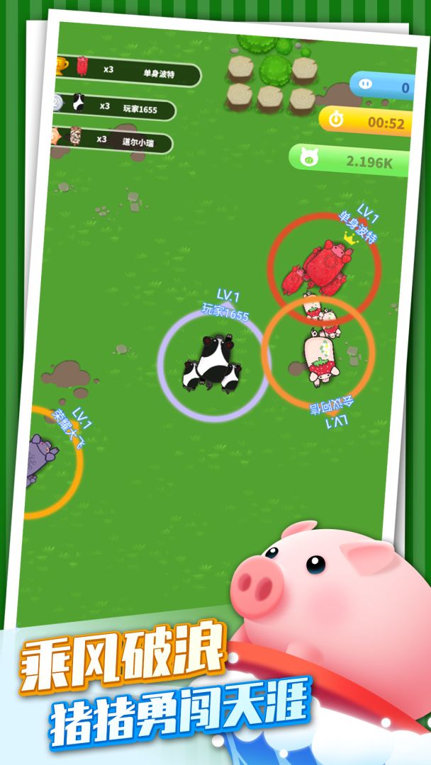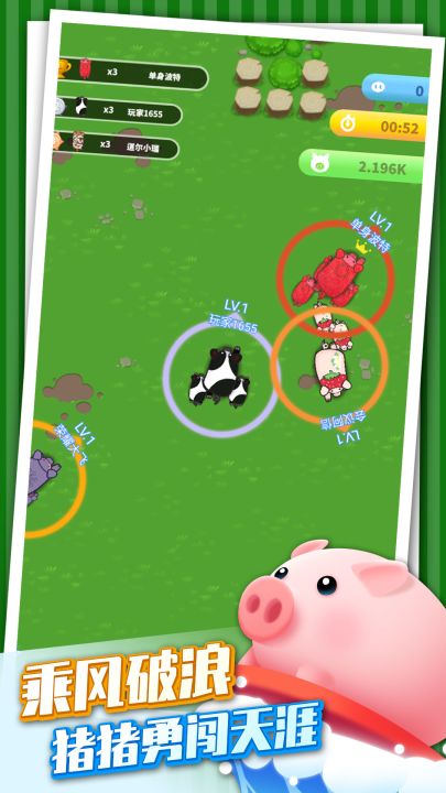 欢迎来到《乘风破浪的猪》,在这里你将扮演各种好玩搞怪的猪猪对抗其他阵营的猪猪,吞并他们扩大自己的阵营。也要注意恐龙的追捕噢!