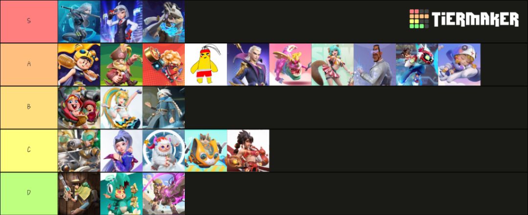 白雪:六边形战士但每一边都不够大 爱丽丝:立回角色变大极具压迫感 艾希:六边形战士且每一边都足够大 雅典娜:六边形战士但每一边都不够大 蒂娜:极高上限极低下限容错偏低 丘比特:在不暴毙的前提下立回高一档才能赢 雪怪:中等强度偶尔的神蛋壳最爱 希雅:外强中干且强度与设备直接挂钩 赛维:沙袋平替且上下限差距大 沙袋:赛维平替但下限比赛维高 红帽:体术道具俱佳你不能不会 魔术师:体术道具俱佳你不能不会 嗒