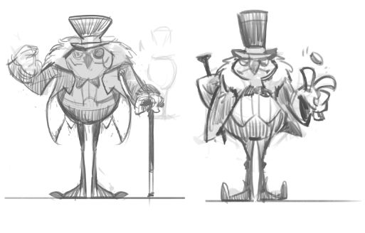 在赛维2.0上线之后,我们把另一个角色重置也提上了日程。没错,就是本世纪最伟大的大魔术师!魔术师的重做是我们想要更加确定Flash Party美术方向的一次尝试。可以说这次重做的过程几乎等同于重新制作了一个角色。首先,我们想从造型上重塑这个新角色,最开始我们为大魔术师添加了一丝丝”危险的气息“,高礼帽、裘皮大氅、鹰钩鼻。在轮廓上,我们尝试了三角加非规整圆型的一级形组合,希望加强整体体块感。我们