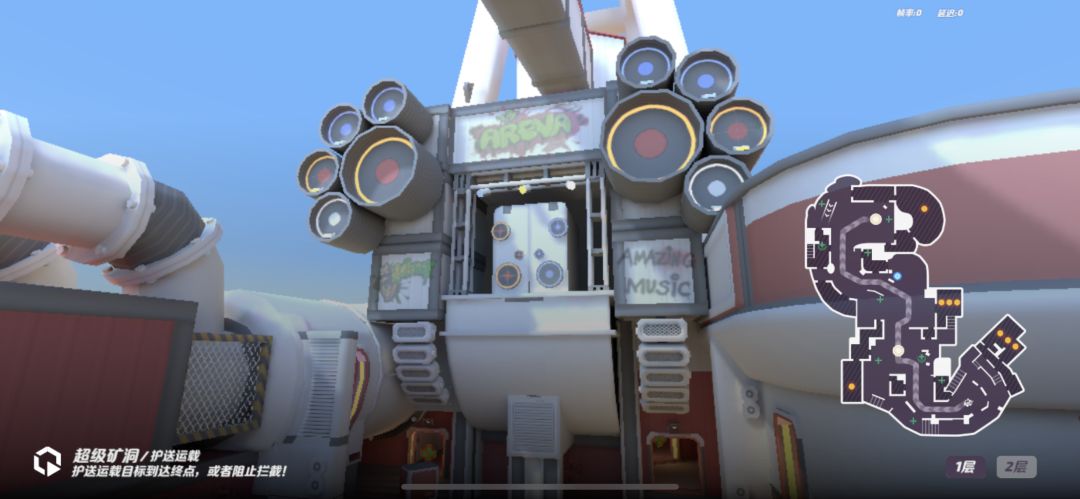 选手们好,今天我们来到火力苏打的5v5赛场:超级矿洞! 【地图规则】-护送运载 随机分配攻守方;蓝色为进攻方,护送运载目标到达终点,获得胜利!红色为防守方,比赛时间结束时,成功阻止运载目标到达终点,获得胜利! 【地图场景】 超级矿洞,巨大的黄金矿场洞穴,位于大洋洲某个大陆深处,巨型的机器正在挖掘地底深处蕴藏价格高昂的黄金。 【地图风貌】 超级矿洞易守难攻,前半部分地形狭窄且掩体居多,后半部分视野广