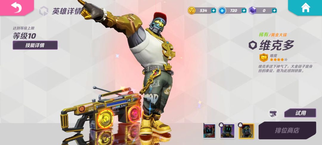 哈喽大家好,今天小编给大家带来了版本T1的维克多攻略,让你快速上手,拿去上大分!感兴趣的小伙伴不要错过了! 角色介绍:“大力联盟的首席健身教练,为保护弱小受到歹徒的报复,以机械的身躯重生。维克多用这份强大活跃在T3舞台上,拯救和保护更多的人。” 优点: 在近距离的时候会有很高的输出,角色撞击的敌人就会短暂的晕眩。 缺点: 手比较短,外观也不够好看,特色并没有那么鲜明。 技能强度: 武器:散弹枪 维