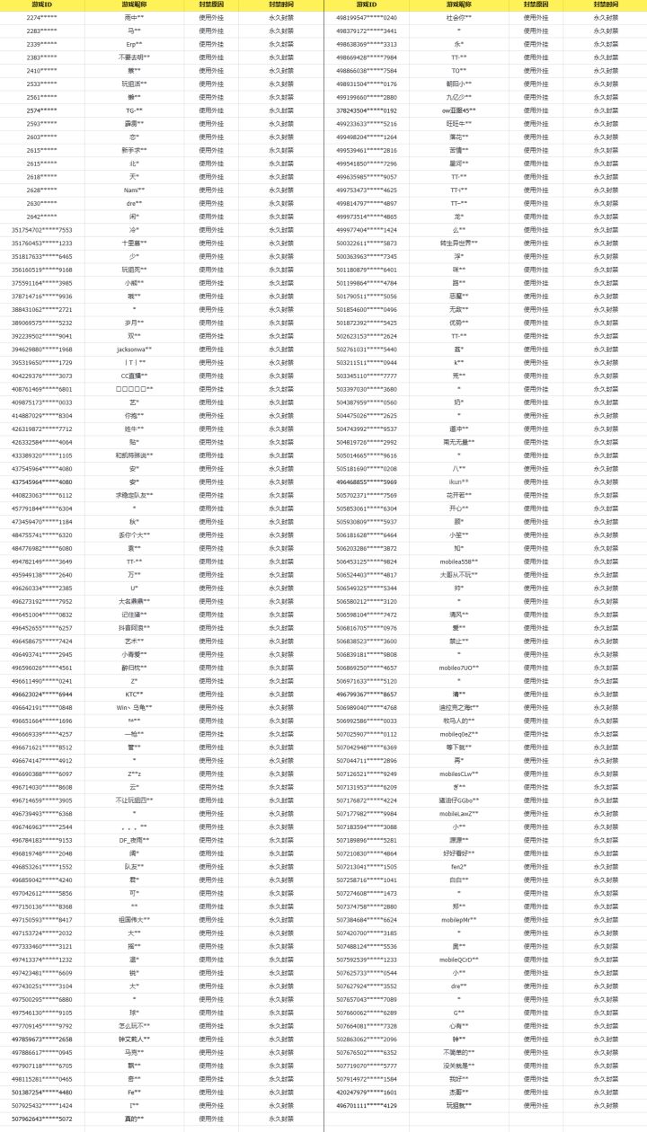 7月13日更新:新增被封禁玩家的游戏昵称,感谢大家的积极建议!7月12日原内容:亲爱的选手:这里是小苏打,最新外挂处罚公告来了。《火力苏打》官方一直致力于维护游戏公平性和保证良好绿色的游戏体验。针对使用外挂及修改器等行为,研发团队已经在第一时间建立了监控系统,确保作弊行为会在及时被发现以及快速锁定作弊账号。如发现此类违规玩家,我们会对其进行严厉处罚,包括但不限于封停游戏账号等措施。大部