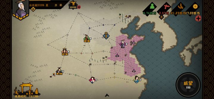 🍁🍁初进游戏,我们会跟随剧情进入一片叫做山海界的大陆,在这里,即将开启我们探索华夏历史文明发展的旅程。 (山海界界面)山海界:平时我们在这个地方养成各种资源道具,或是培养名臣,用以以及参与各种活动。魂入华夏:通过右下角的魂入华夏按钮,我们可以开启新一局或继续游戏。————————————下面来简单介绍一下游戏的主体内容吧!(以三皇五帝时代举例)一、开局准备1.我们开启一局游戏,首先进