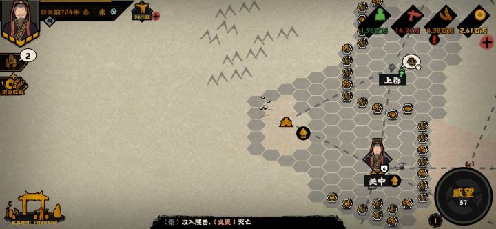 打了越和秦以后,发现开局应该按历史走向来打,越应该灭吴、楚,秦应该把西戎灭了(义渠、山戎)。