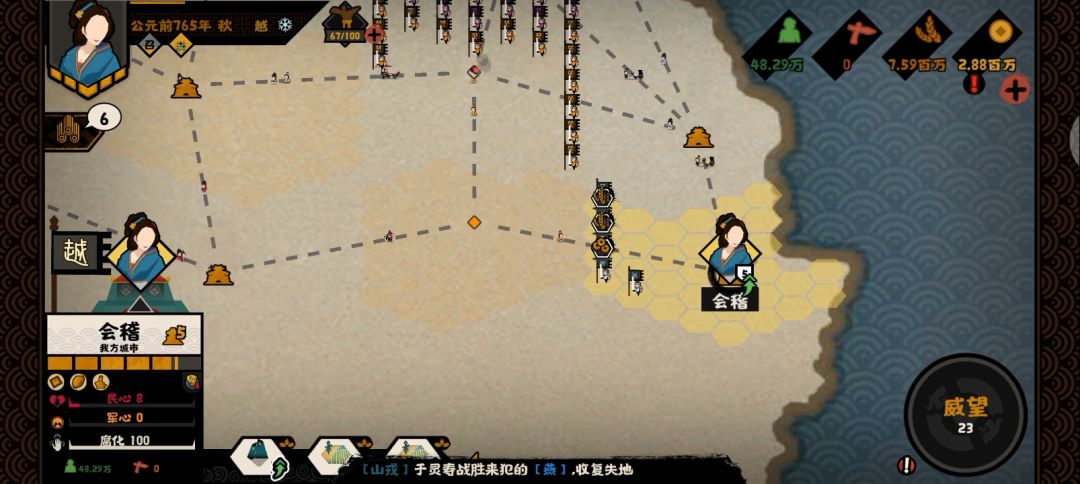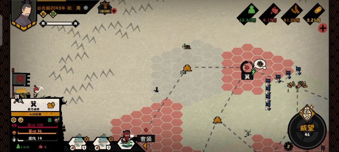 枪兵的兵种技能骑兵可以躲开,骑兵的兵种技能枪兵也可以绕开,弓兵的兵种技能,目前感觉上只有等到后期才能和弓兵打,估计也是比较艰难,可惜我把韩国灭掉了,只能下一局再试了