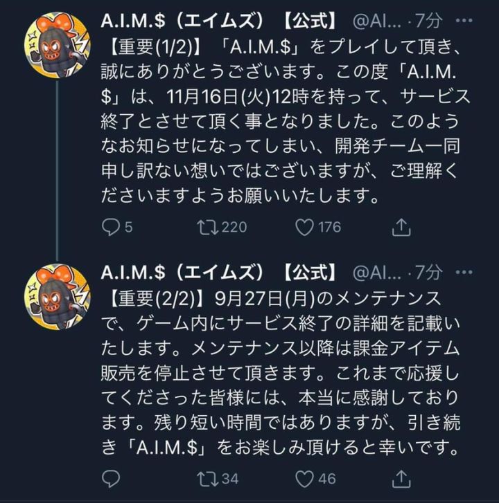 A.I.M.$的日文官方译名为エイムズ,本作是2020年11月上线的日服游戏。就人物建模来说吧,对比现在的很多游戏来说,真的很一般。音乐挺好的,那是没的说。虽然玩法上有自己的特色,也需要一段时间的练习适应,才能够体验到游戏的乐趣。=下载方法=IOS:目前只能在日区苹果商店下载,搜索“AIM”或者“エイムズ”都可以,不过要认准图标了。安卓:市面上的主流加速器应该都支持本作的下载了吧,