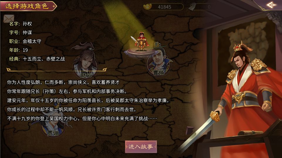 咚咚咚……离6月的日子越来越近了,《三国志贾诩传》即将增加一个全新的故事剧本,这个剧本主要是讲述东吴起源到崛起再到强大的这段历史过程。在这个过程中将有3位君主将起到至关重要的作用! 整个故事剧本总计包含58个普通剧情关卡。这58个关卡将分别讲述3位君主不同的历史。孙坚自钱塘之战起势,经过汜水关之战本该大方溢彩,却因袁术嫉妒,故意迟发或不发军需与钱粮,导致其受挫而战败。而后孙坚又在攻入洛阳后取得传国