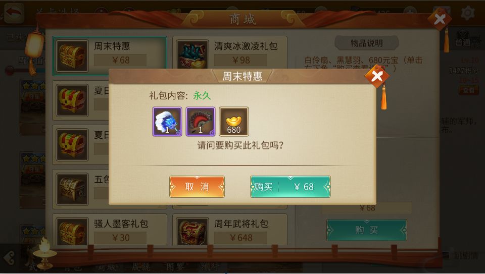 新增精英赛季玩法v1.0 a.【黄巾之乱】参与方式:精英关卡达到60星可报名参与。 a.共20个关,4个BOSS关卡 b.赛季奖励 赛季奖励包含:银币、元宝、随机教本、普与斗系宝物随机箱子 特殊兑换材料奖励:黄巾遗物、汉军令 ①首通奖励 ②赛季普通关卡达成分奖励 ③赛季Boss关卡排名奖励 c.赛季规则 七天之约签到活动 七日轮回签到活动,享受更多福利。 任意元充值送女拳师活动 任意元宝充值赠送