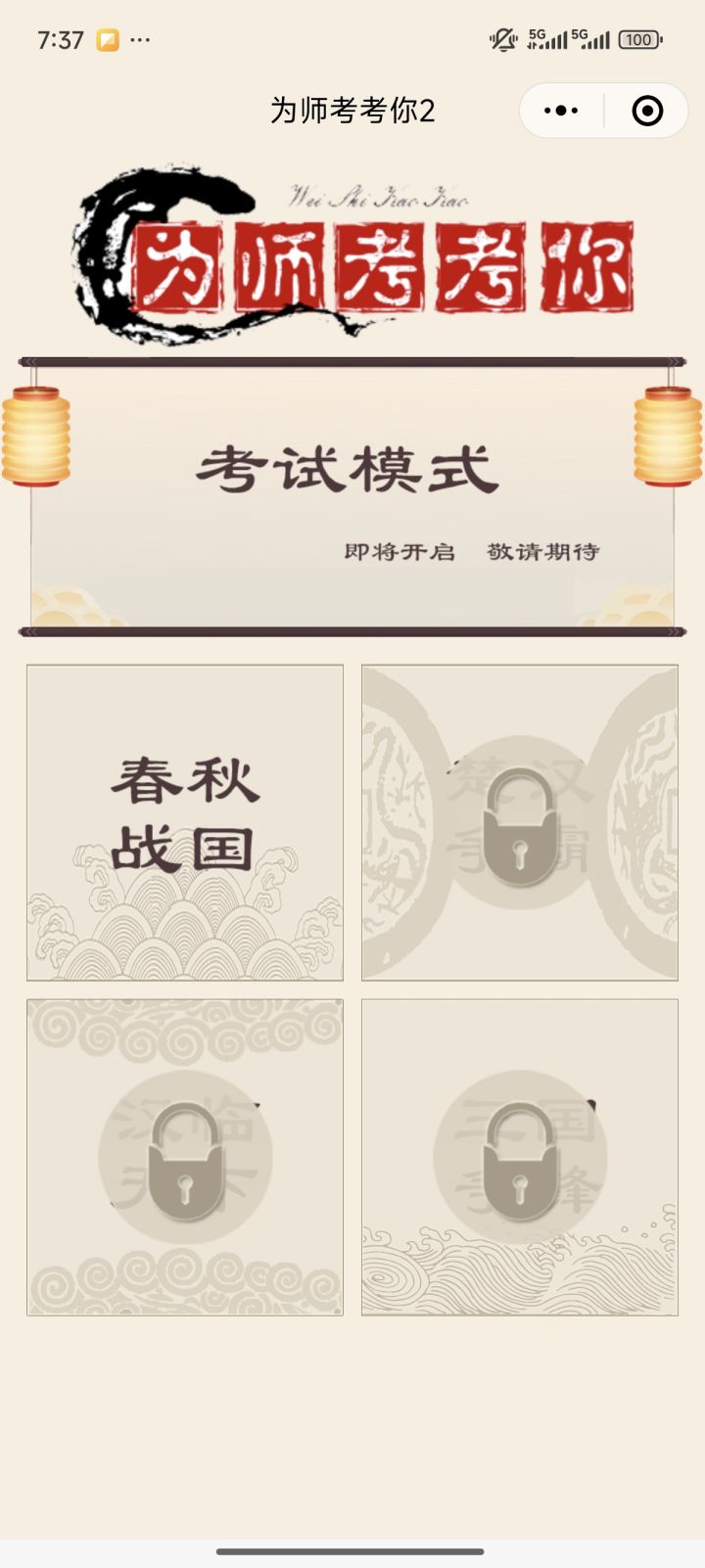 内容较少但题量适中,了解知识是可以的,但是有些纰漏在下面一一列出。貂蝉。。。前两个选项怎么看都是一样的。。。燕昭王。。。题目重复了。。。皇甫嵩,朱儁。。。没记错的话,夷陵之战的时候吕蒙已经去世了。。。第三个选项少了个字,死诸葛吓走活仲达。。。还有一个问题,字体排版过于死板,有的时候解释太长就看不见了,还有在选项中会挤在一起,就好比第二张图只有一半的字。。。期待后续内容,加油!