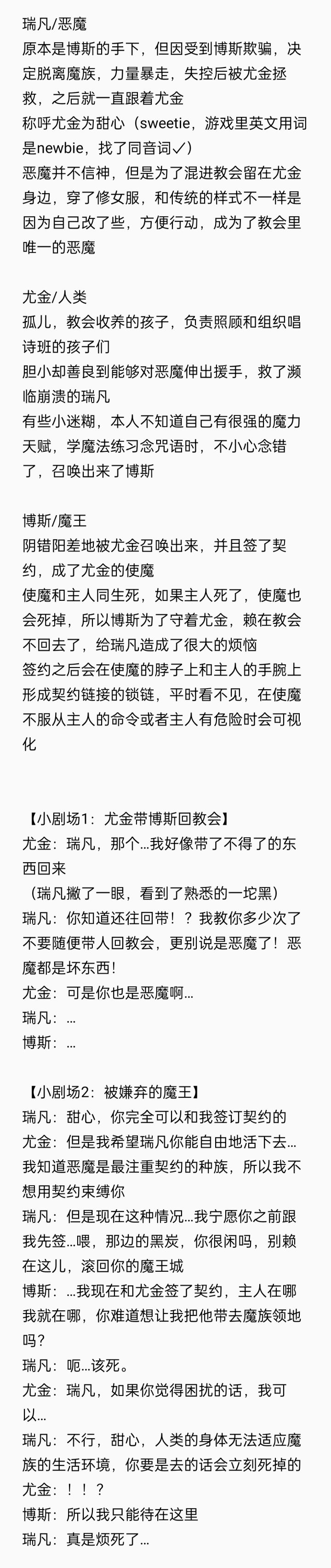 继续填一下西幻pa的坑hhh博斯的话,想了下,毕竟是boss对不对哈哈哈哈,就去当魔王吧哈哈哈配色真是太黑了,于是把线稿也放一放顺便po一点设定✓有博尤向✓