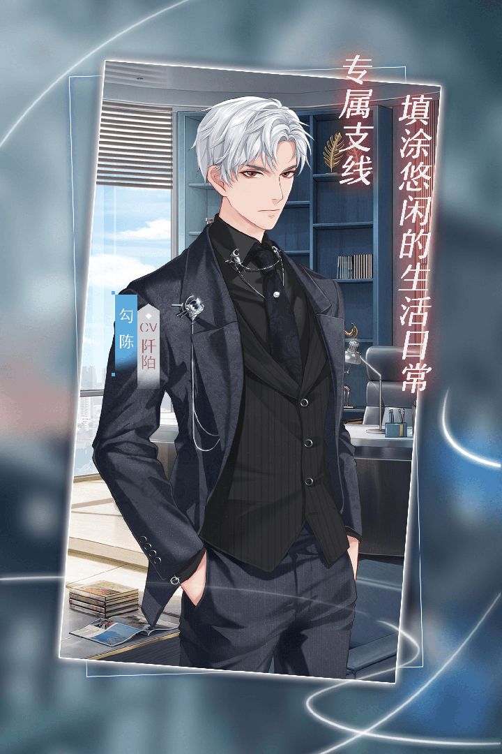 人物数据:年龄:25身高:188cm体重:76kg生日:1月10日职业:尚跃集团商务部总监(毕业于南江高校工商管理专业)外貌:银白色碎发,红眸喜欢的食物:红酒炖牛尾、杂煮火锅喜欢的礼物:手工制品常用配饰:袖钉、领带夹喜欢的花:康乃馨人物性格特征:面容冷峻,看上去较为强硬。总是露出冰冷的表情,眼神凌厉。身材修长高大,由于工作原因经常穿着得体的西装。性格冷漠,不苟言笑,对工作