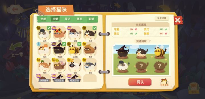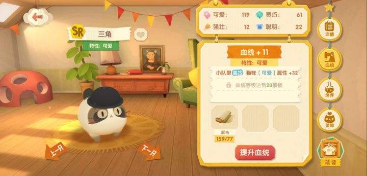 三角是有群体属性的猫猫,对同队高冷猫猫属性有加成但是选择猫咪的时候看不到猫猫的性格属性希望可以改进这一点,总不能要记忆自己所有猫猫的性格吧😂