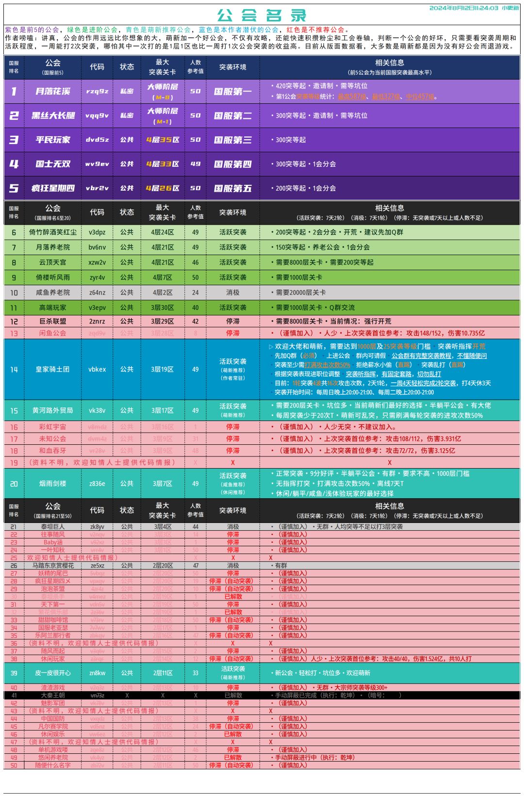 对于萌新来讲,冲层1万在前期是比较难的,这时候加入一个好的公会,和大家一起进步升级就会省力很多。这里是忠实玩家整理的一份名单,在玩家群也随时更新哦~ 勇士们新朋友们可以加入游戏,加入玩家群一起杀怪![表情_斜眼笑]#点击泰坦2 #游戏安利 #热游推荐