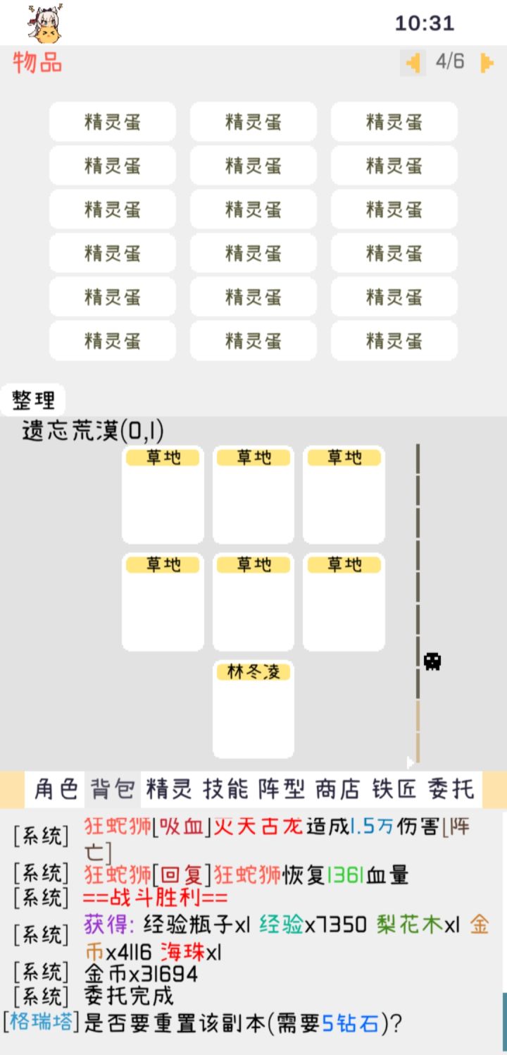 然后翡翠书海抓个低经验因子的百冠花精,有复活,一只就够了,因为委托栏里的的勇士试炼可以刷一本复活书给直接吃,就可以相互复活了。