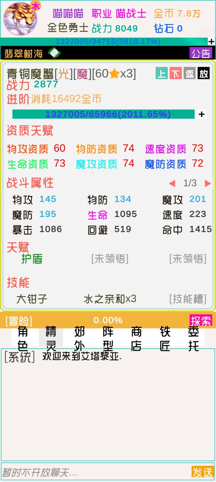 全地图通关了,留个攻略。吸引本人的元素是开局难、肝、简洁、喜欢挑战和自虐的玩家可以试试。玩法主体就是宠物调教,本游戏防御受益远大于其他属性,所以宠物强化的主体思路就是强化防御(个人看法)本游戏最强、可以无脑强化的宠物是 【开局宠物】最强附加技能是增加大量防御的【壳x3】最强单天赋是控场生存技能【石化】强化受益最高属性是【防御】以上是宠物以下是人物(已发现)【智力】小幅度增加法