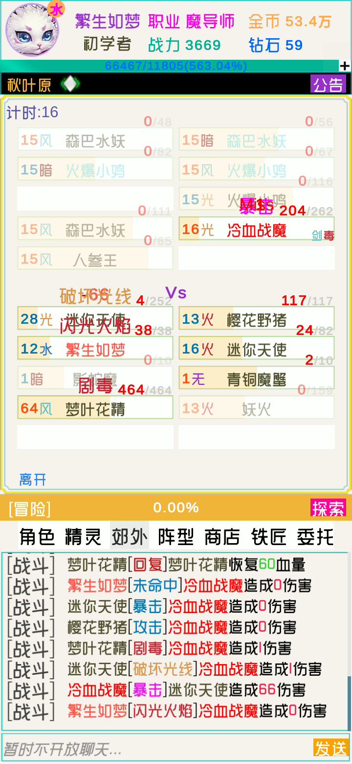 我只想吐槽一下这游戏作者,这红名怪也太牛匹了我64级宠物打个16级的怪要不是会回血估计会翻车了。还有这伤害要是打个会回血的这得打到地老天荒吧。
