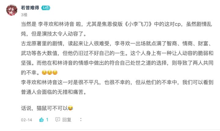 恭喜这位少侠获得我们准备的巧克力一盒,请在5个工作日内联系我们的工作人员哦~❤️---------------------又到一年情人节啦~虽说咱们武林中的情人节不是在这一天,但是今天可以趁着这个机会一起唠唠各个武侠小说/影视作品中经典的武侠cp呀~菠萝在这里说几个经典的抛砖引玉一下:1. 杨过和小龙女小声嘀咕:白古真的是太美好了。不管经历了多少,不过时间过了多久,这两人就是命中注定,