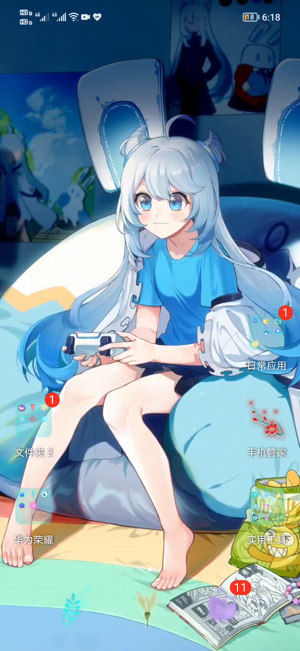 不经常用的,可以放到上面,图标是华为主题的盖世英雄(需付费)