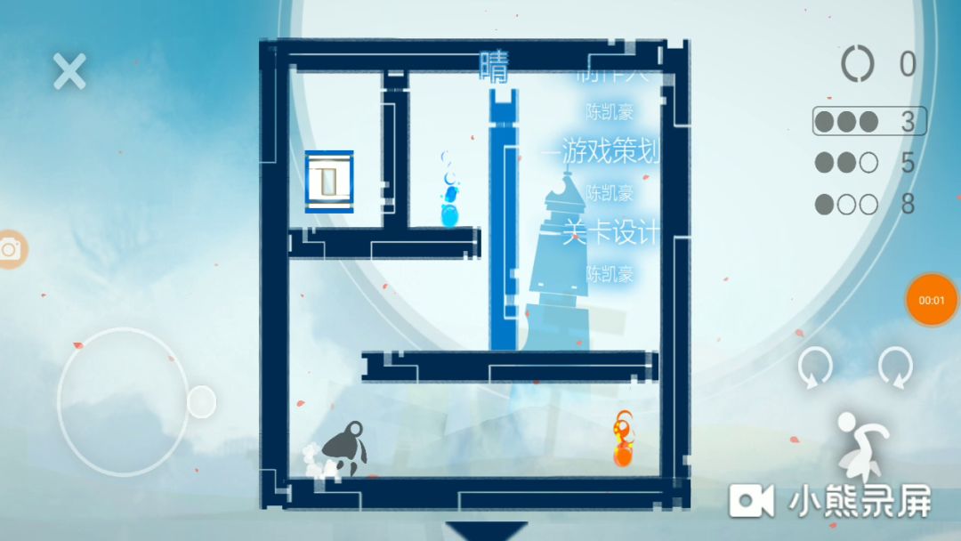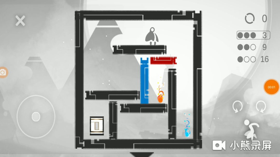 第五章攻略第一关1.向右融合红色火焰,向左来到最左边,向左双重旋转。2.向左融化蓝色墙,融合蓝色火焰,向左旋转。3.向左旋转,跳向终点。第二关1.向左双重旋转,融合蓝色火焰。2.向左双重旋转,跨过蓝墙,消灭黑色火焰,融合红色火焰,融化蓝墙,走向终点。2.2第三关1.向左双重旋转。2.向右旋转。3.向右旋转。4.向右旋转。5.向右旋转,走向终点。3.5第四关1.向左双重