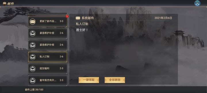 这第6天都舍不得签了,算了,就让他永远都保持在第6天的页面吧顺带一提,不自动删除邮件真好,成功保留下了满满的回忆,可是有个缺点,他不能单独删除其中几个,那上限了怎么办?