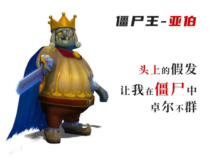 西方王国最后一任国王,曾经的英雄,在战争中无数次化险为夷,被人们称为不死的亚伯。由于地牢封印的松动,原本勇敢而果断的国王逐渐陷入疯狂与偏执,他下令扩大的墓地,甚至渐渐覆盖了整个帝国的首都。最终,不死的亚伯成为了真正的不死者,而曾经首都的居民们,也成为了墓地的居民,继续永远爱戴着他们的国王。游戏里亚伯出演了三个角色:僵尸王,骷髅王,头骨王