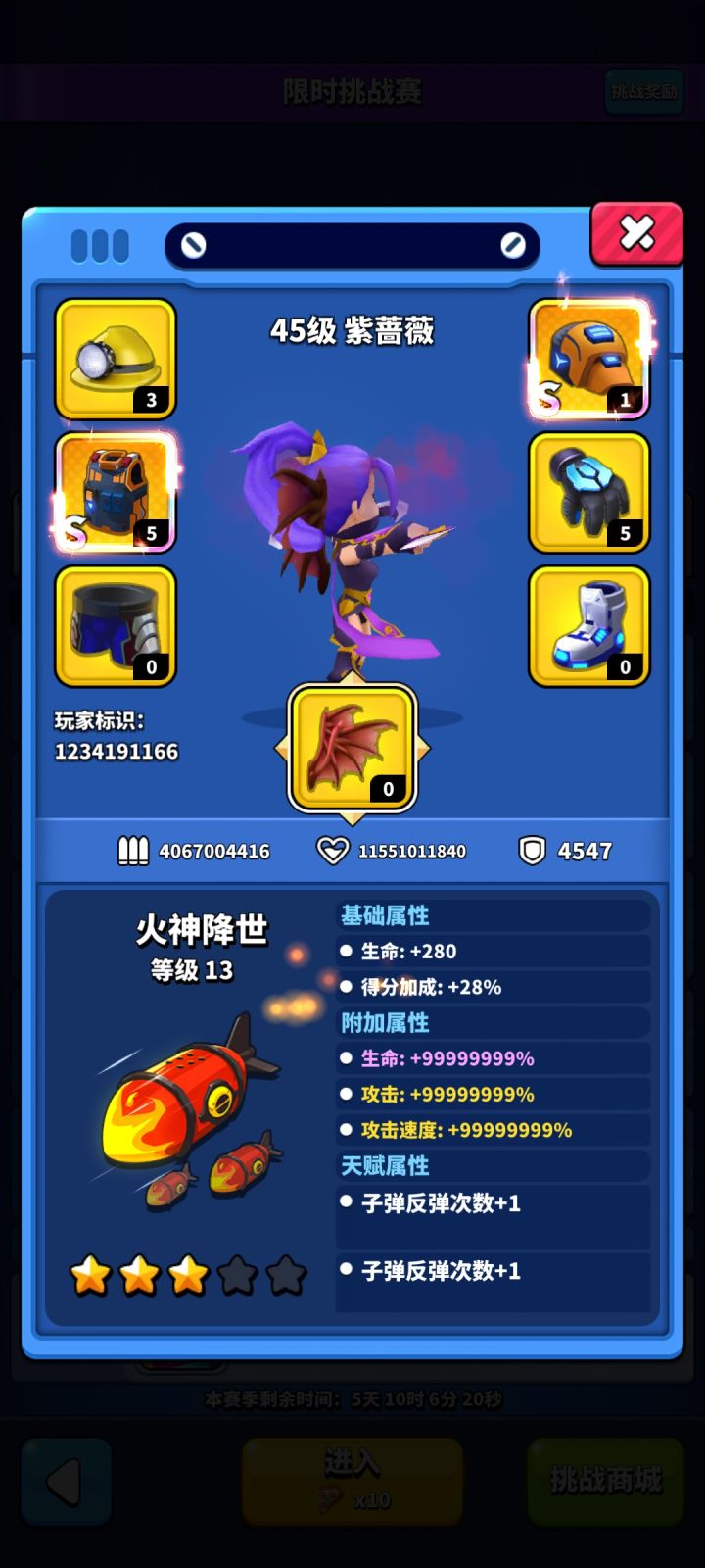 总时长不对,玩到后面才发现排行前的不是大佬而是靠超级武器BUG搞得,全是99999%,再翻评论才发现此操作已经不是一两天了~果断汽油,花钱就当扶贫了