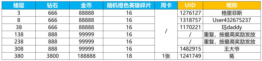 恭喜以下三位枪手获得1000宝石、100000金币、20随机橙色碎片 请获奖玩家在12月24日之前联系官方QQ:2671383649,微信:sagi_tcqs领取奖励哦~ 逾期未联系则视为主动放弃,请各位神枪手注意时间哦~ ——————以下是原帖—————— 登登登~新活动已经上线啦,不知道枪手们进展如何呀? 相信枪手们为了自己喜爱的角色,纷纷花费了巨额宝石,不知不觉,账号里的宝石余额快见底,中意