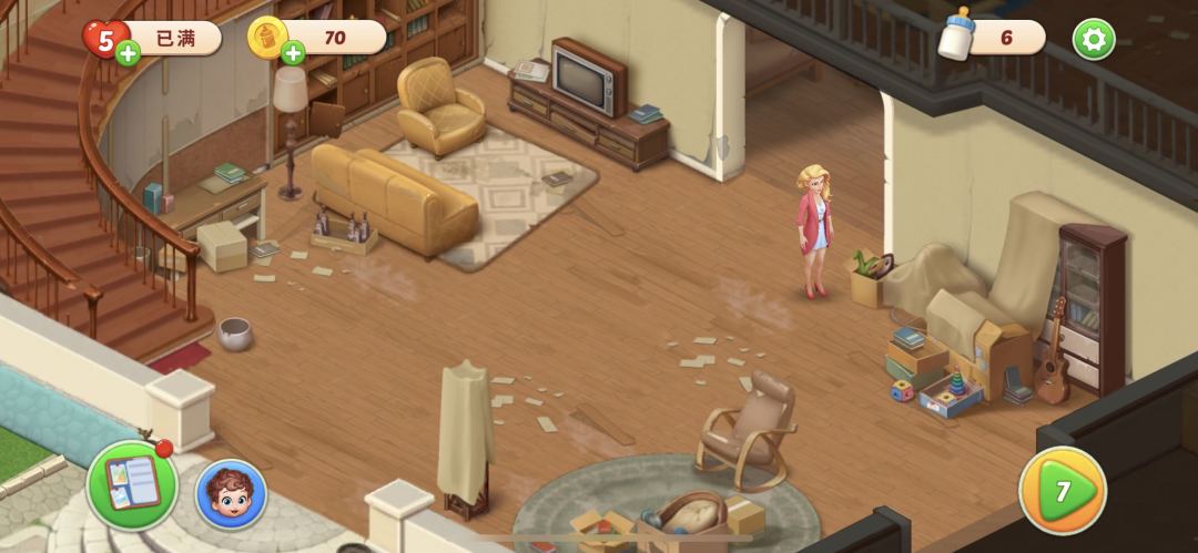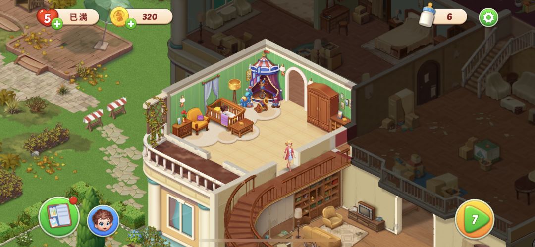 《梦想设计家》是一款家园装修、Baby养成与三消为一体的休闲游戏。 为了帮助玩家能更好地熟悉游戏,下面番茄为大家带来主界面的功能一览。游戏主界面大致分为六个区块,下面将分别为大家进行讲解。 1.生命值+金币 游戏主界面左上方是生命值以及金币,玩家可以完成闯关获得更多的金币,来解锁更多有趣的内容。同时闯关失败会消耗生命值。 2.奶瓶 游戏主界面右上角是装修奶瓶,闯关获得奶瓶,奶瓶可以用来完成