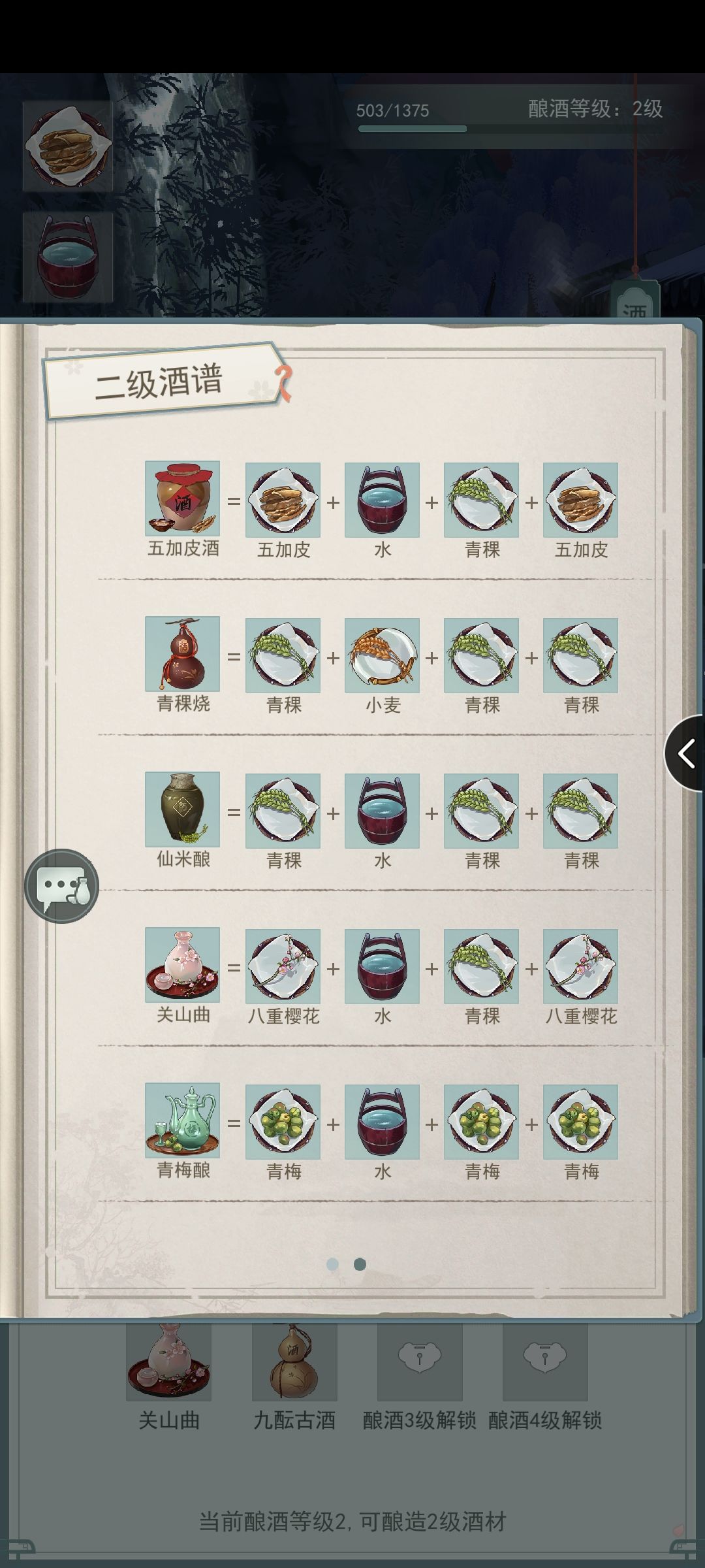 说明:1.表格里红色文字均为超等级食材,举例:三级食谱需要用到四级食材。 2.表格里有2个四级食谱,分别是羊方藏鱼、沔阳三蒸。这三是四级菜,但是三级菜就做出来了,估计是bug。 3.马上关服了,此贴不再更新,表哥也不会更新了。等公测再见吧。感觉公测还会改...... 最后应楼下要求,放上酒谱,取用随己