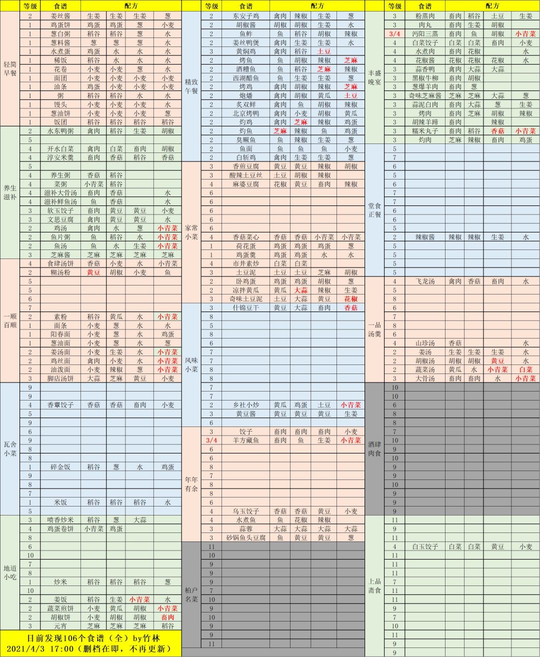 【江湖悠悠】4月3日最后更新,四测1-4级食谱大全共106个!(一个不拉)